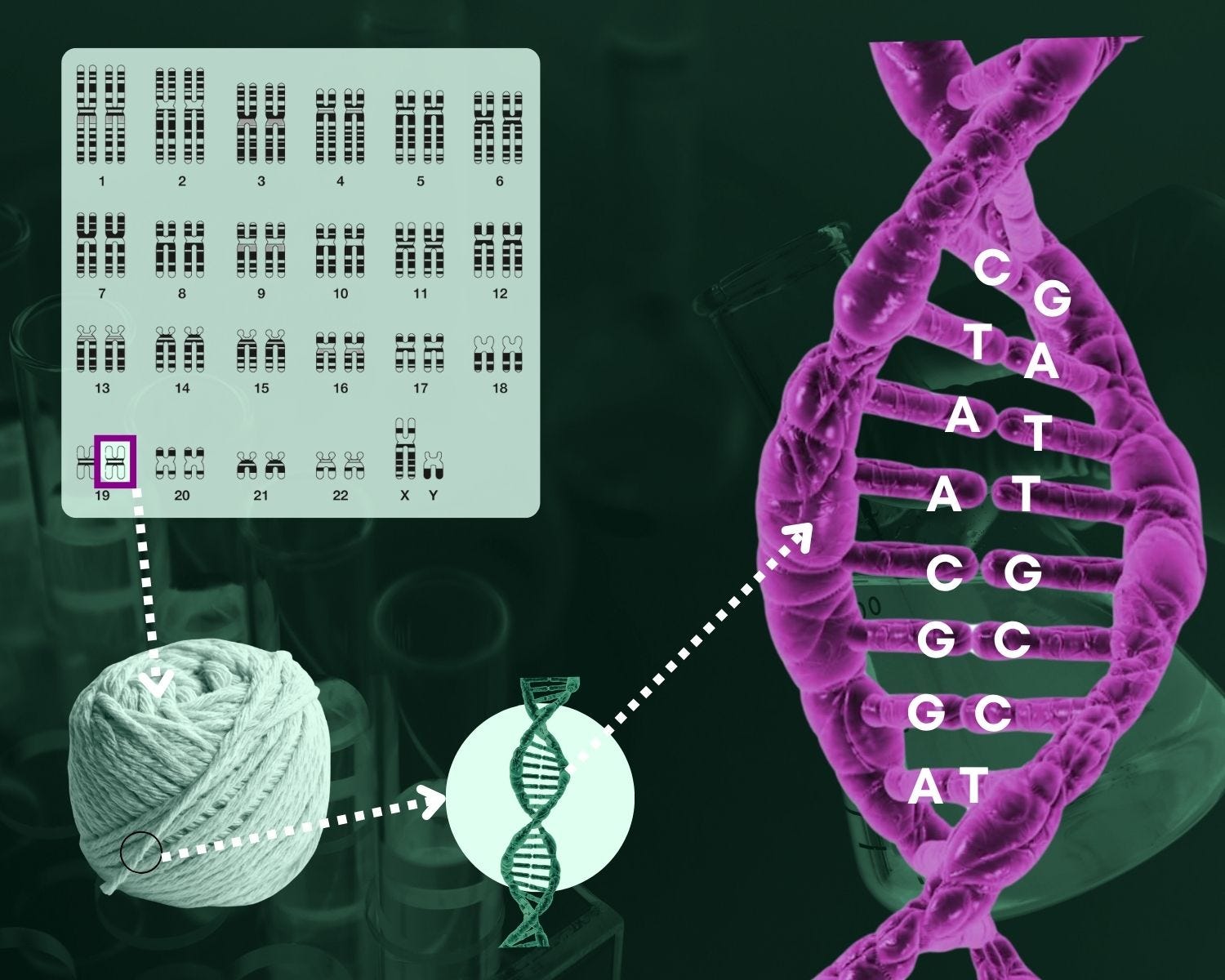 Ce qu’il est intéressant de retenir quand on n’est pas spécialiste : on sait désormais dans quel ordre s’enchaînent les « lettres » qui composent le « mot » de chaque filament d’ADN qui est en réalité un chromosome (voir l’illustration ci-dessous).